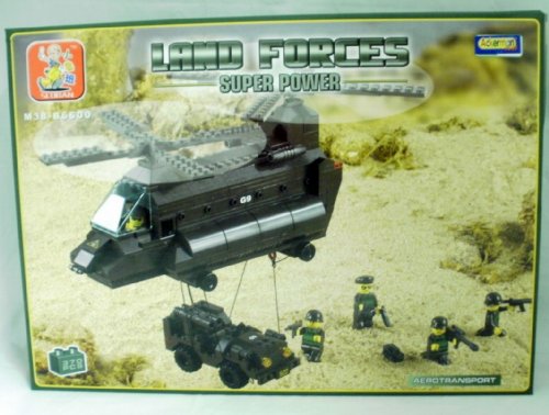 Description du produit pour Sluban des forces terrestres super puissance: camion missiles Aerotransport hélicoptère, et de l'Armée Minifigures
